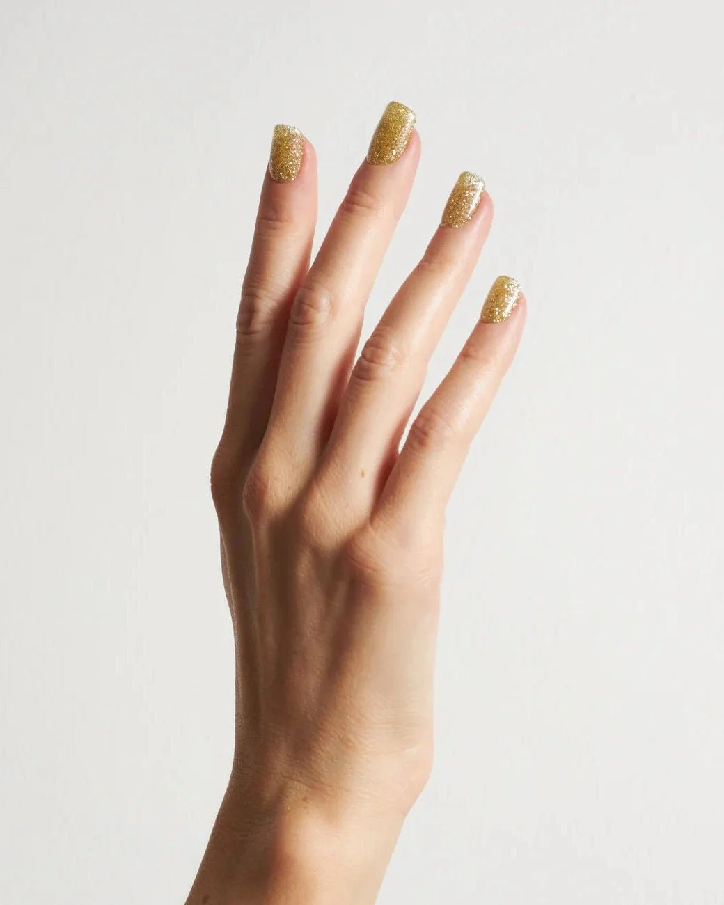 Mit Deiner aufregenden Glitzermaniküre zeigst Du Stilbewusstsein und Klasse. Der mit Goldpartikeln versehene Farbton erinnert an ein spritziges Glas Champagner und verspricht Eleganz am Tag und aufregende Momente in der Nacht. Ein Powder für jeden Anlass.