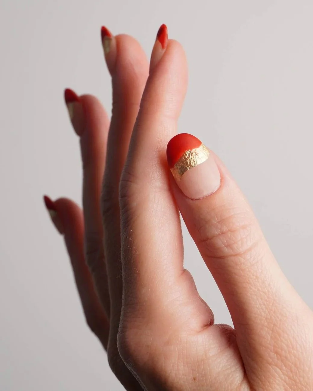 Unser Tipp für Dich: Das Blattgold sollte nicht als vollständig über den Nagel verarbeitet werden, sondern nur als Highlights zwischendrin. Lege es nicht ganz glatt auf den feuchten Top Coat, sondern etwas unordentlicher, da so ein besserer Effekt entsteht.