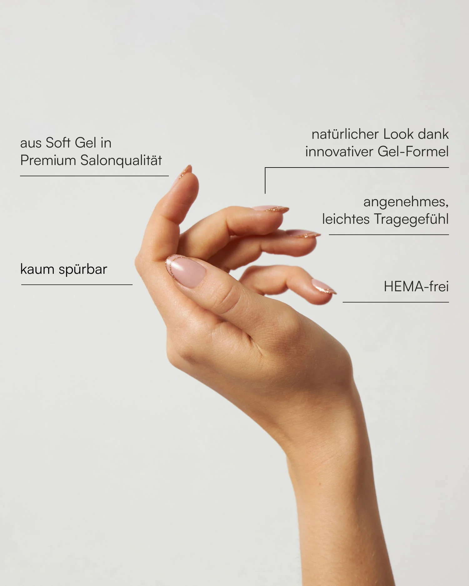 Wir alle brauchen gelegentlich etwas Extravaganz in unserem Leben, warum nicht einfach auf die Nägel bringen? Golden French kombiniert die klassische Eleganz mit einem Hauch Luxus und Glamour. Dennoch lässt sich das Design vielseitig kombinieren und ist dank seiner runden Form perfekt für den Alltag geeignet. Du musst also nicht erst auf den nächsten “besonderen Anlass” warten, kreiere ihn selbst!