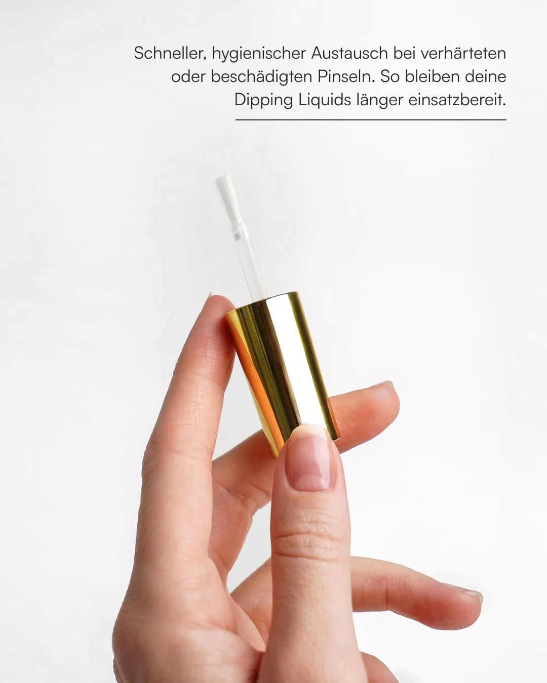 Einfach austauschen, festdrehen und wie gewohnt weitermachen. So musst du dein Liquid nicht gleich ersetzen, sondern kannst es mit einem frischen Pinsel ganz einfach weiterverwenden.